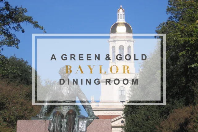 Add some gold flatware, white dishes, and some Mark & Graham linens embroidered with the only monogram that matters to you (B-U) and I think any ex-Waco-ite would be more than happy here.